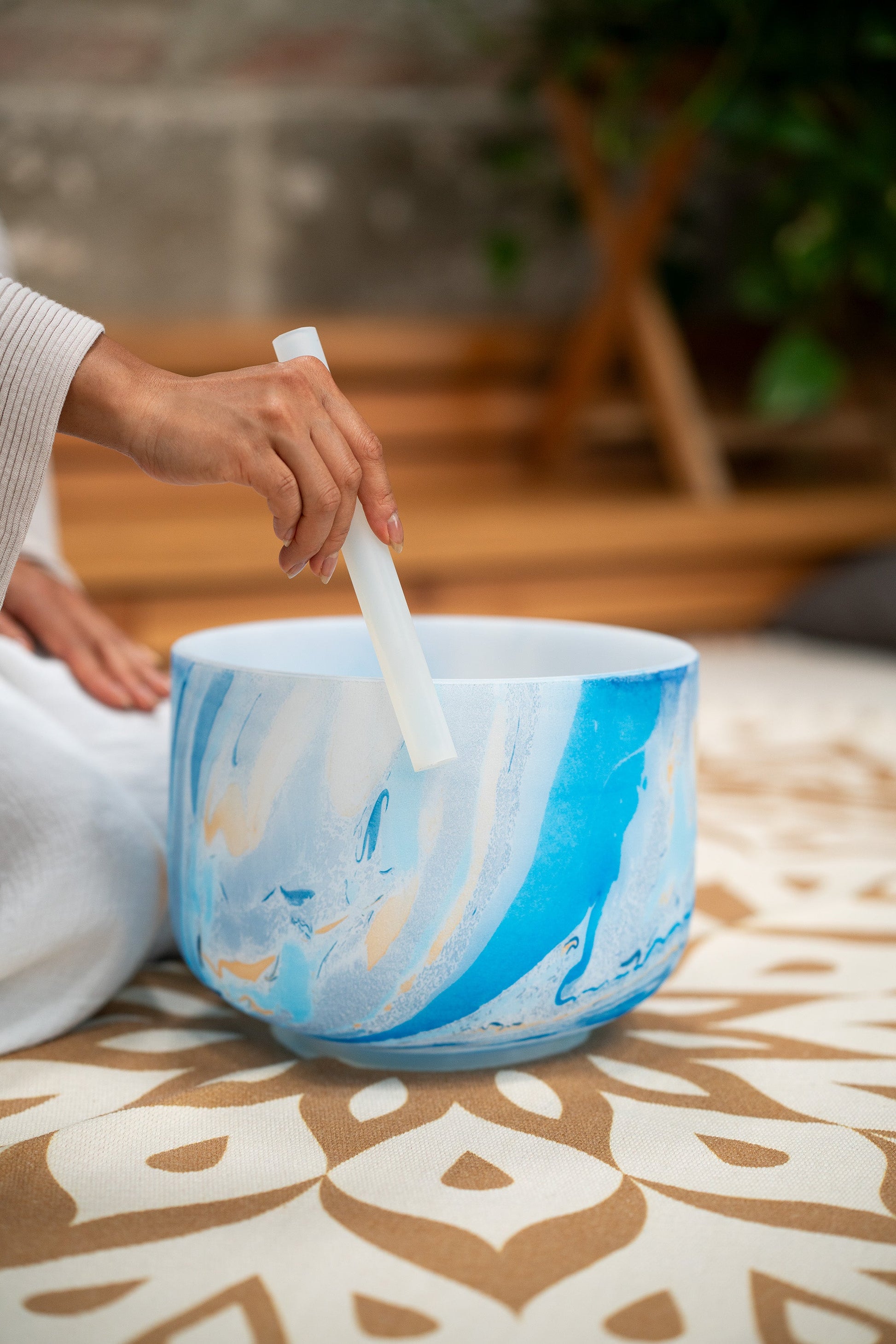Enhance intuition and inner vision with the 10" Marble Crystal Singing Bowl, tuned to A4 (432 Hz) for Brow Chakra activation.
