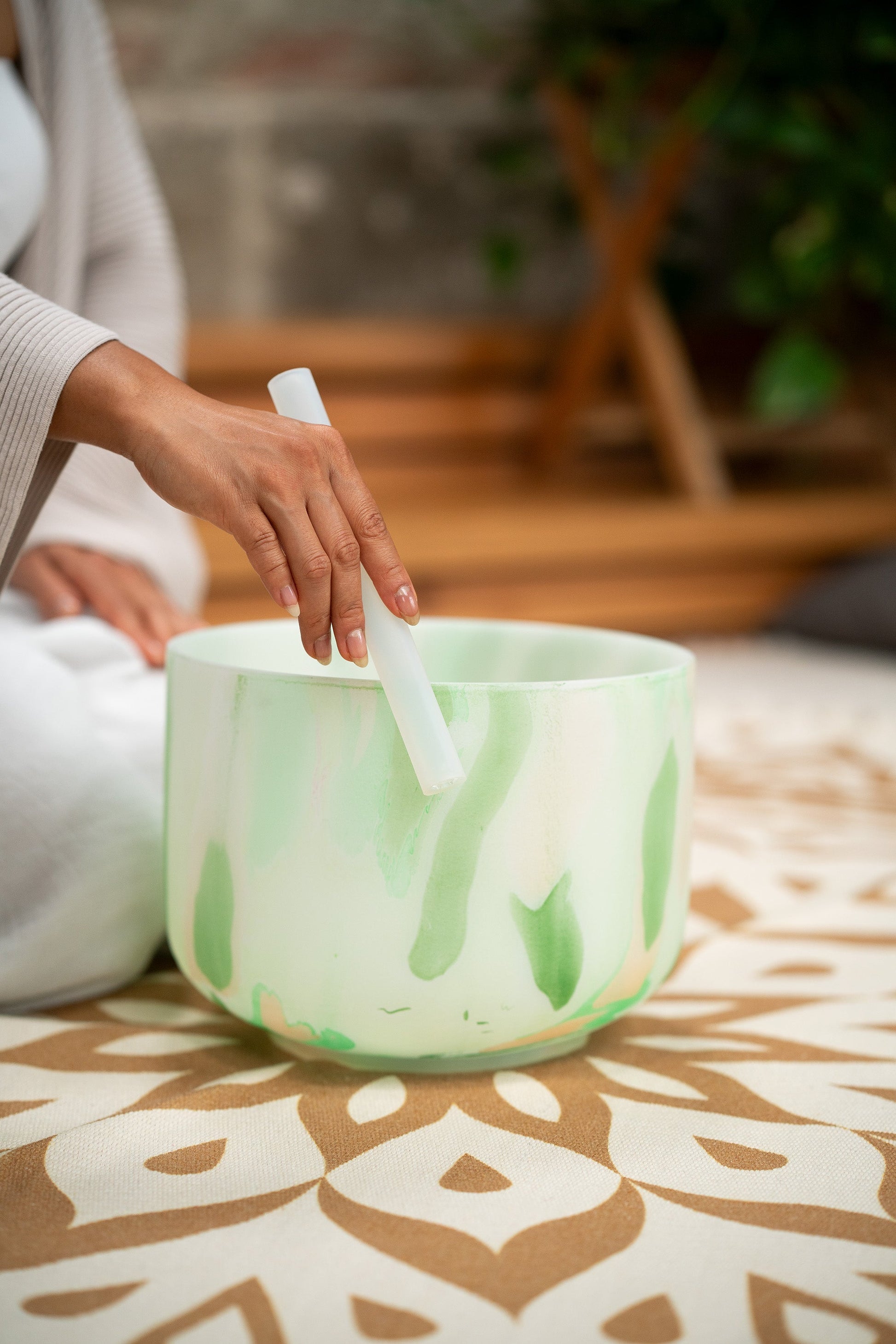 Open your heart to deeper love and harmony with the 10" Marble Crystal Singing Bowl, tuned to F4 (432 Hz) for Heart Chakra healing.