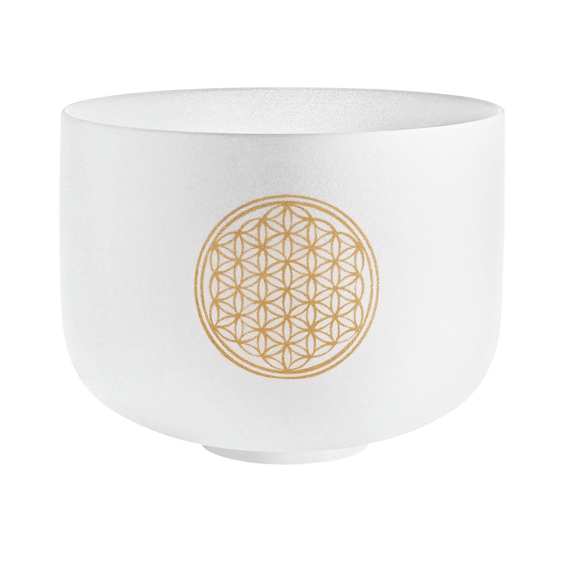 10" White-Frosted Crystal Singing Bowl, Flower of Life 128 Hz