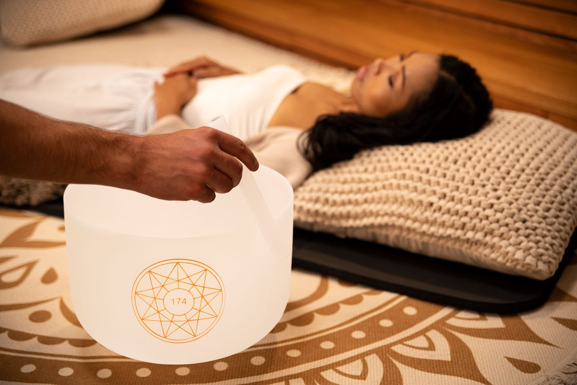 - Tuned to 174 Hz - F3 – Supports pain relief, grounding, and deep relaxation.