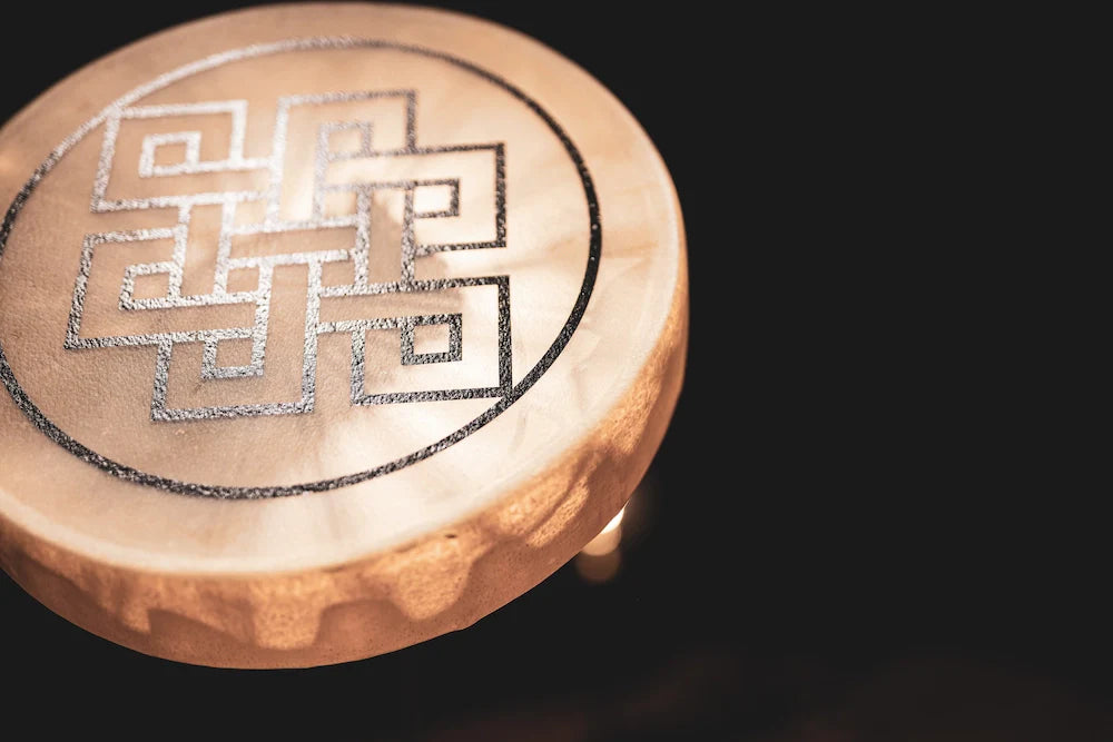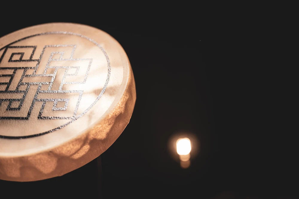 Immerse yourself in the sacred resonance of the Endless Knot with this Native American-style hoop drum, designed to enhance meditation, energy work, and spiritual connection.