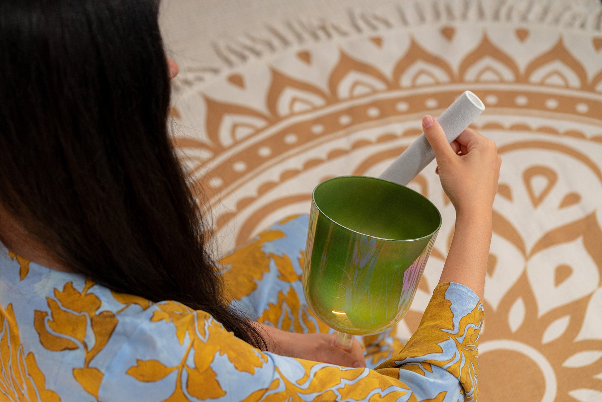 Immerse yourself in deep emotional healing with the 5.75" Essence Solfeggio Crystal Singing Bowl, tuned to UT 396 Hz to support release from fear and guilt.