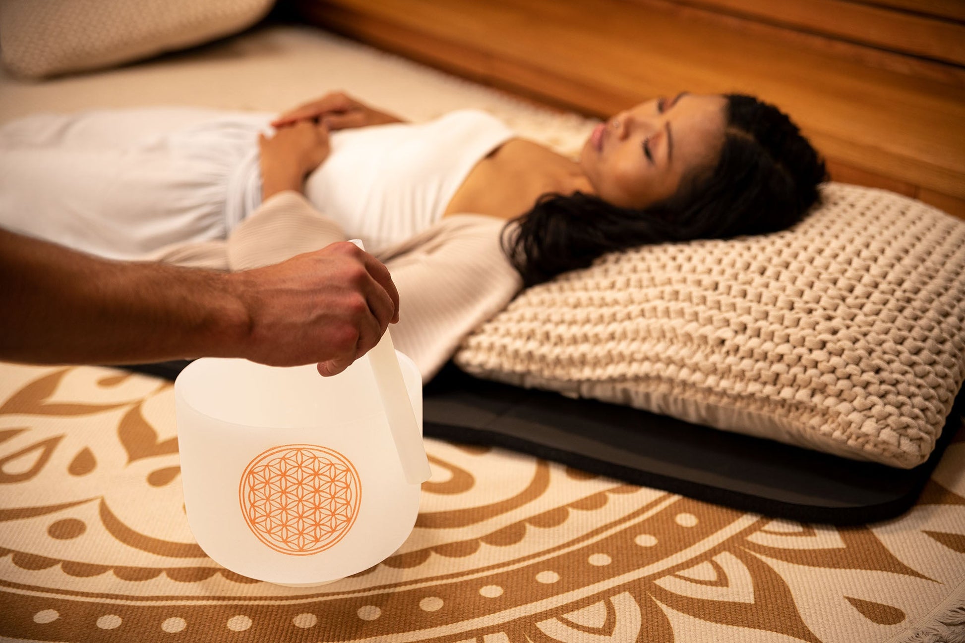 Immerse yourself in the sacred resonance of the 8" Flower of Life Crystal Singing Bowl, attuned to the transformative frequency of 128 Hz. This bowl harmonizes all chakras, creating a space for healing, balance, and deep meditation.