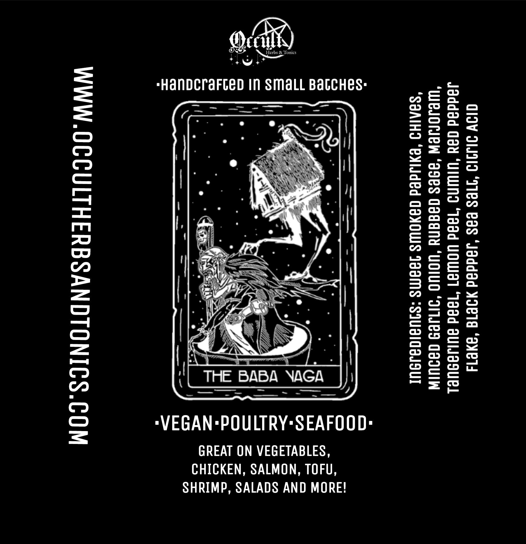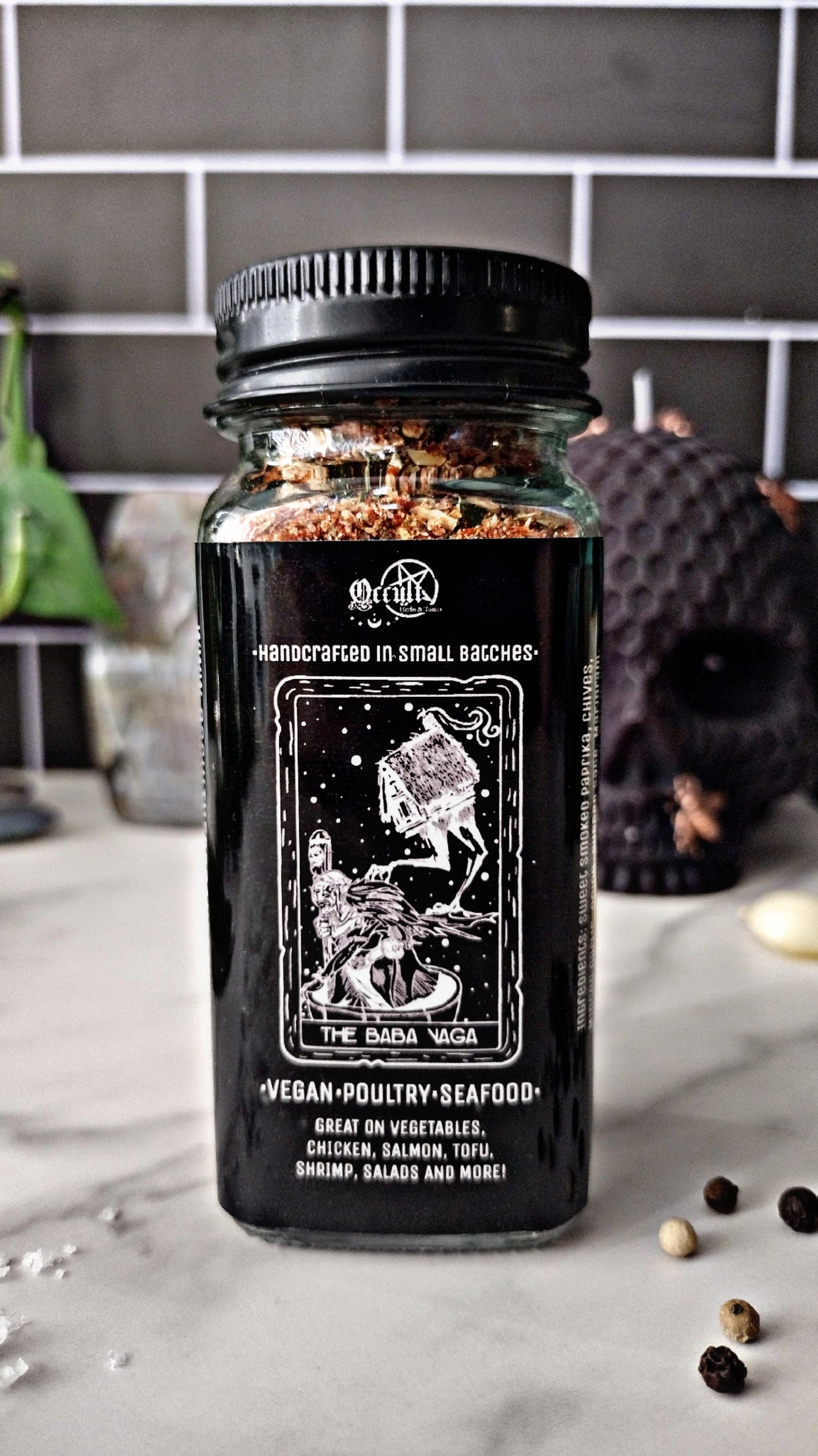 In Slavic folklore, Baba Yaga stirs her cauldron in a hut that walks on chicken legs, weaving spells of both fear and wonder. Our Baba Yaga Blend channels that same duality: bright citrus and aromatic herbs with a grounding touch of earth. Chives, marjoram, black pepper, and lemon unite to elevate poultry, seafood, and more—banishing unwanted notes while summoning deep, balanced flavor. Conjured in small batches with quality-sourced ingredients, this blend transforms your kitchen into a hearth of old-world magic.