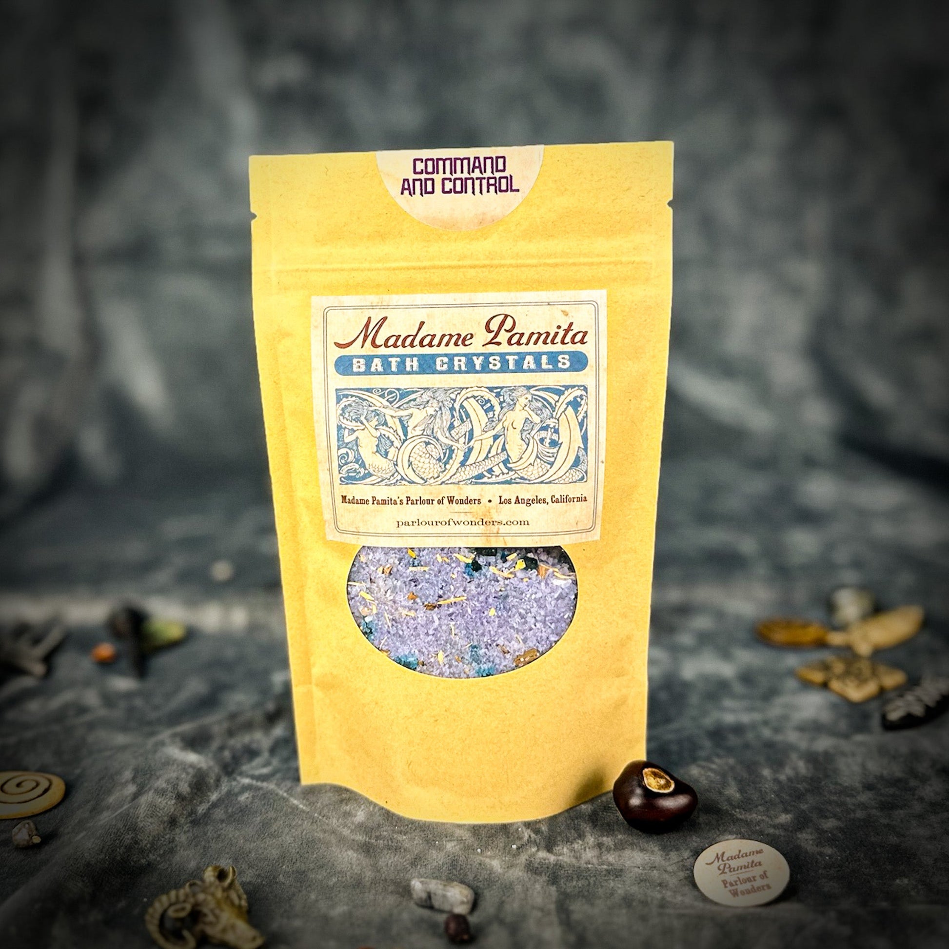 Madame Pamita’s Command and Control Bath Crystals are crafted with the finest natural ingredients, inspired by the traditions of rootworkers and spiritual practitioners. Each blend includes all-natural sea salt, Epsom salts, organic or wildharvested herbs and botanicals, and organic essential oils, carefully formulated to support your intentions.
