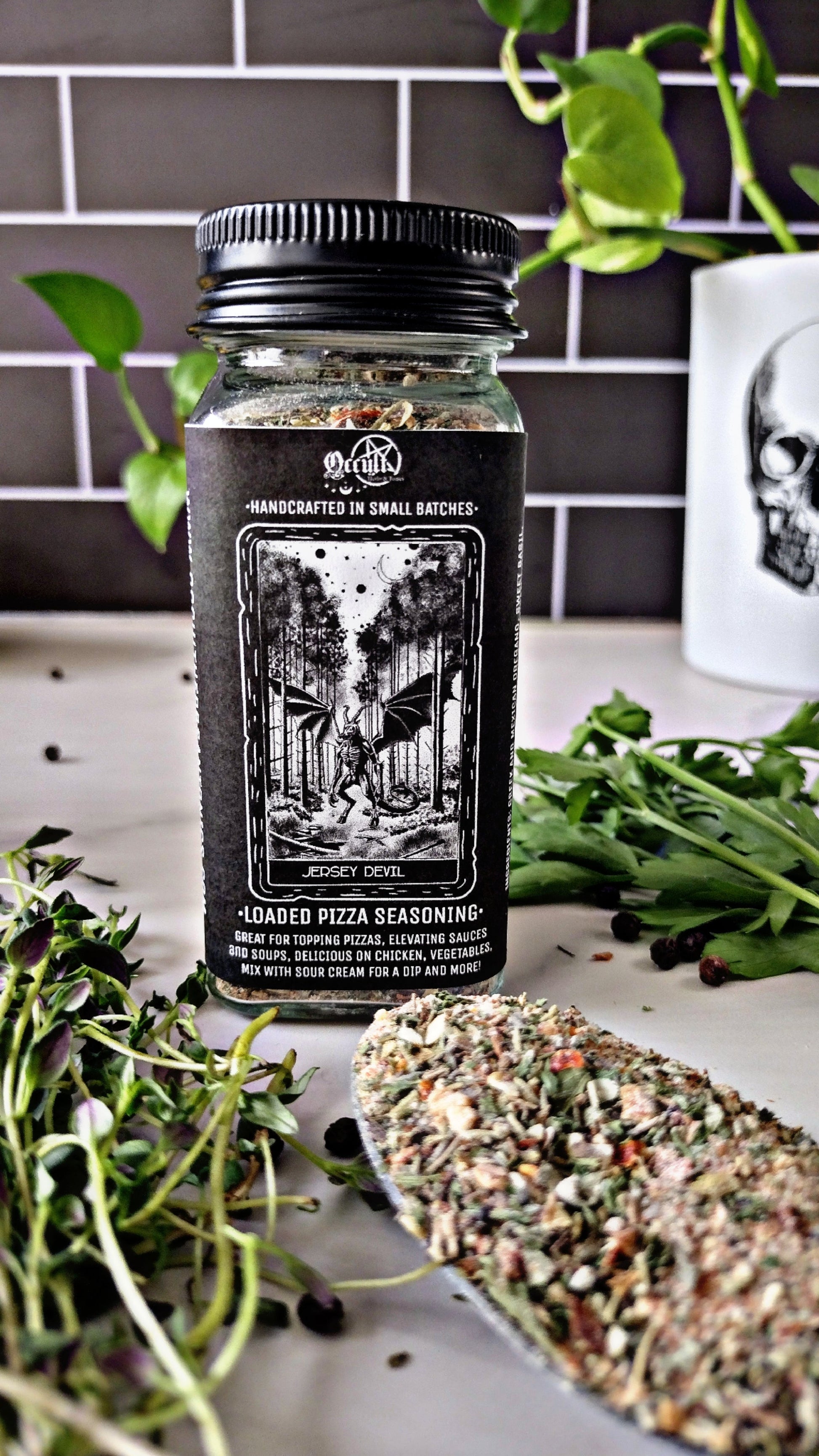 Crafted in small batches by Occult Herbs & Tonics, this loaded pizza seasoning is your new go-to for supernatural flavor without the high salt, added sugar, or preservatives. Whether you're topping pizzas, elevating soups and sauces, or stirring up an addictive chip dip, this blend is pure 🔥.