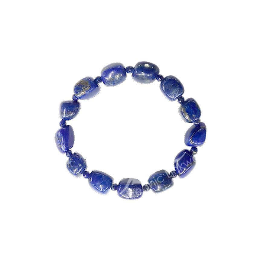 Adorn your wrist with wisdom, truth, and inner peace with our beautiful Lapis Lazuli Tumbled Stone Bracelet. This unique piece features genuine Lapis Lazuli stones, not in uniform beads, but in their natural, smooth tumbled forms, showcasing the stone's captivating deep blue hues often flecked with golden pyrite and white calcite inclusions.
