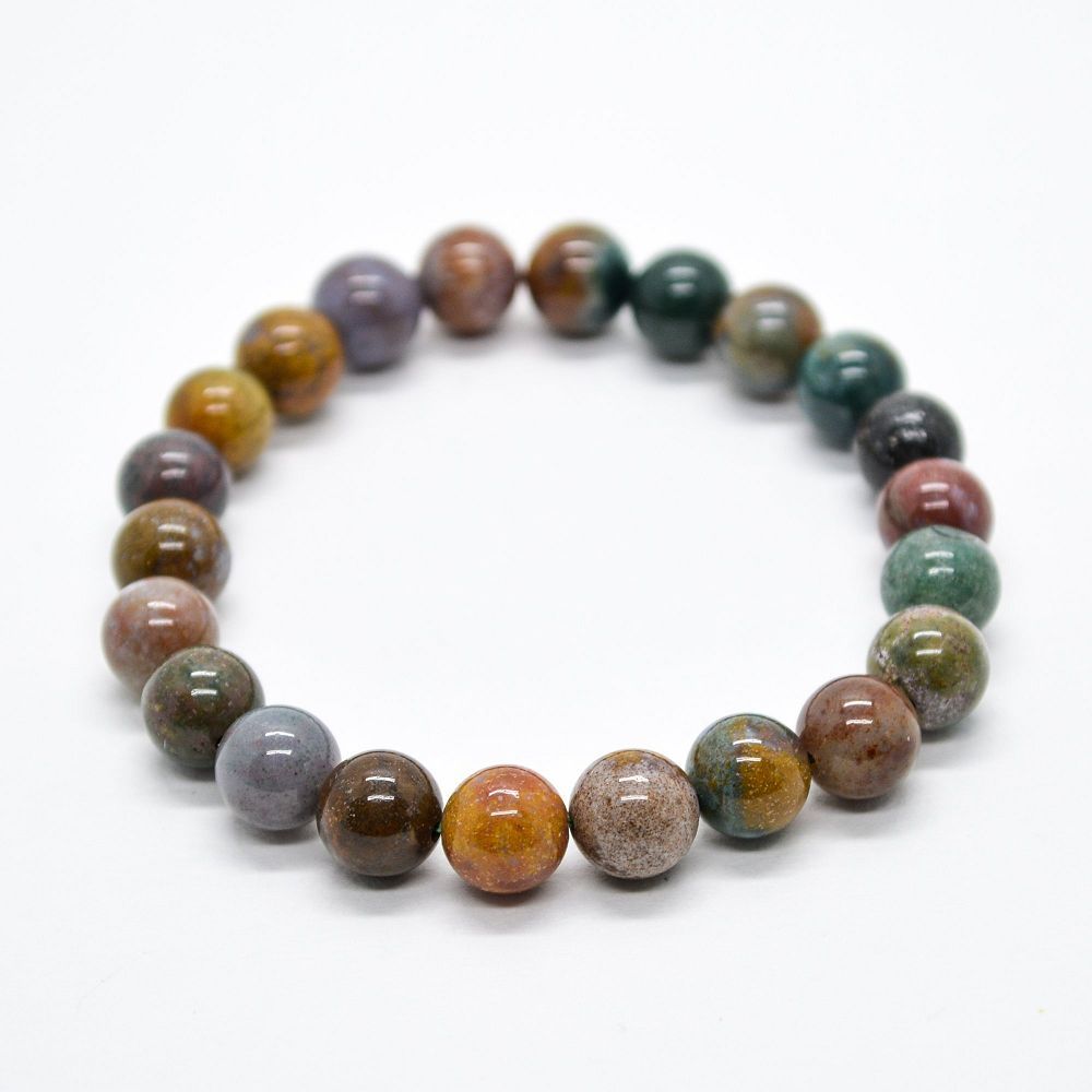 Embrace tranquility and celebrate joy with our Ocean Jasper Bracelet. This captivating piece features genuine Ocean Jasper beads, showcasing unique orbicular patterns and a spectrum of soothing colors reminiscent of the sea. Ocean Jasper is known for promoting feelings of peace, bringing a sense of well-being, and encouraging communication. It's often associated with stress relief and fostering a more optimistic outlook. Strung on a comfortable elastic cord, it's a beautiful and calming accessory for daily wear.