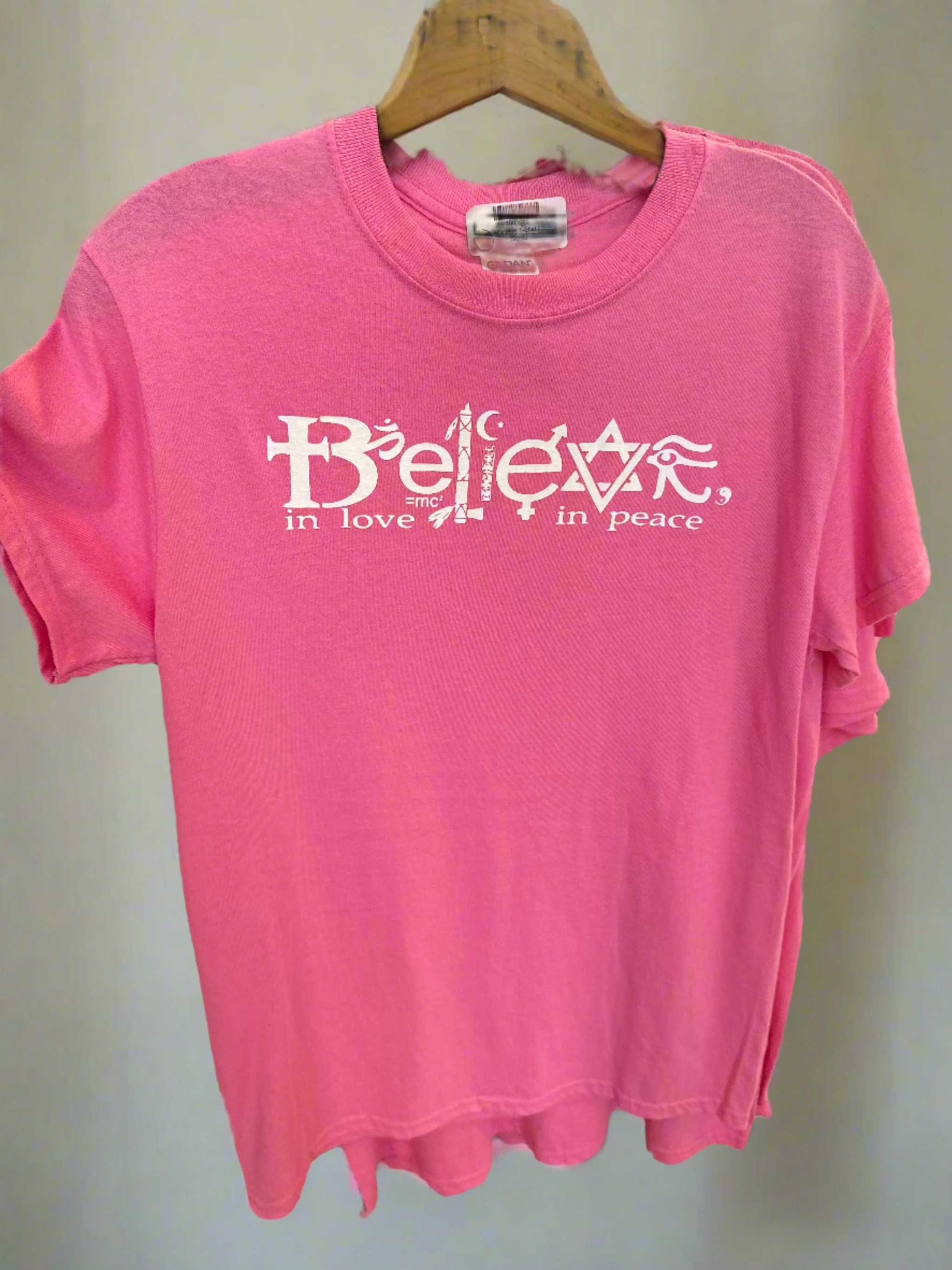 •Design: “Believe” graphic with various symbols, accompanied by the phrases “in love” and “in peace”