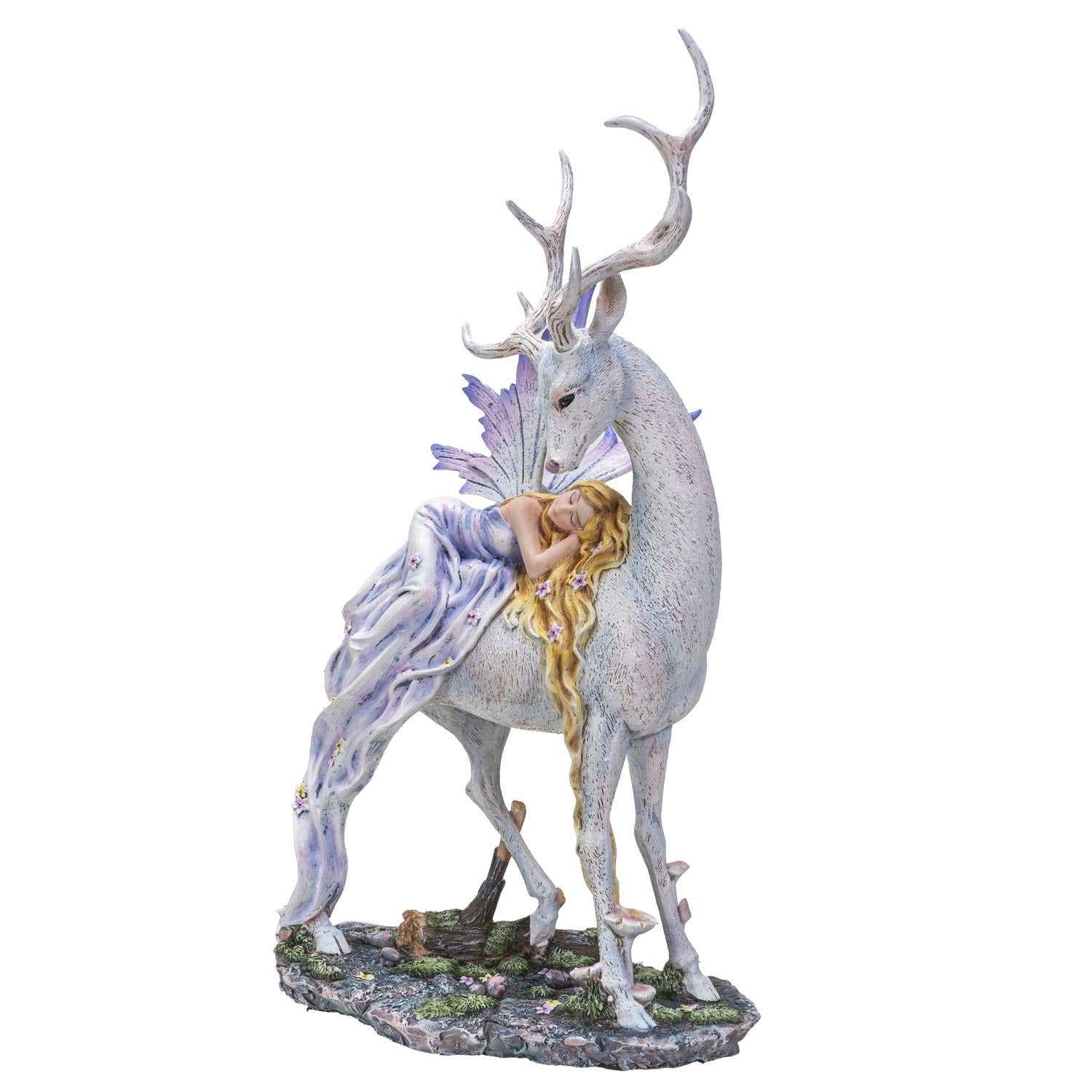 Sleeping Fairy on Deer Product Size: 8" X 4" X 13" Material: Cold Cast Resin