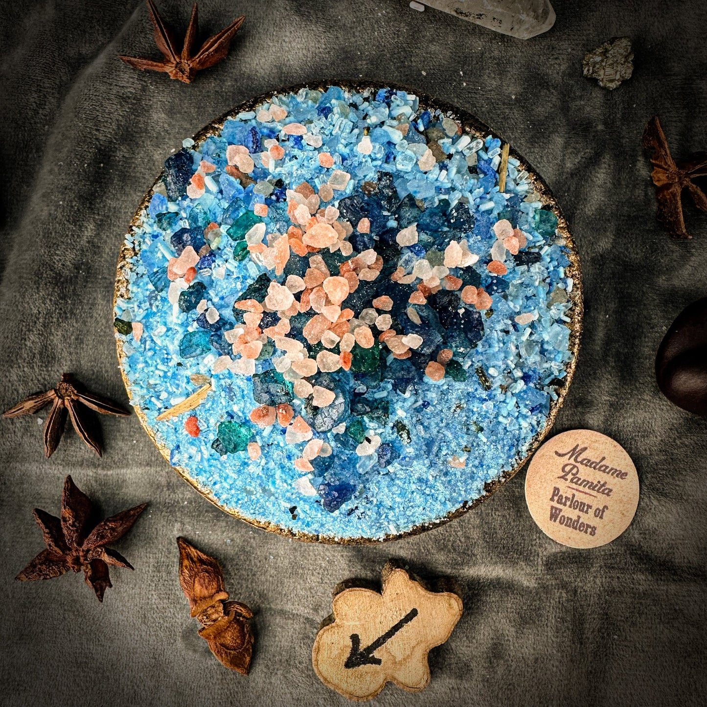 Madame Pamita Bath Crystals contain the highest quality ingredients, the same all-natural ingredients that rootworkers used 100 years ago. The recipe includes all-natural sea salt, Epsom salts, organic or wildharvested herbs and botanicals, and organic essential oils.