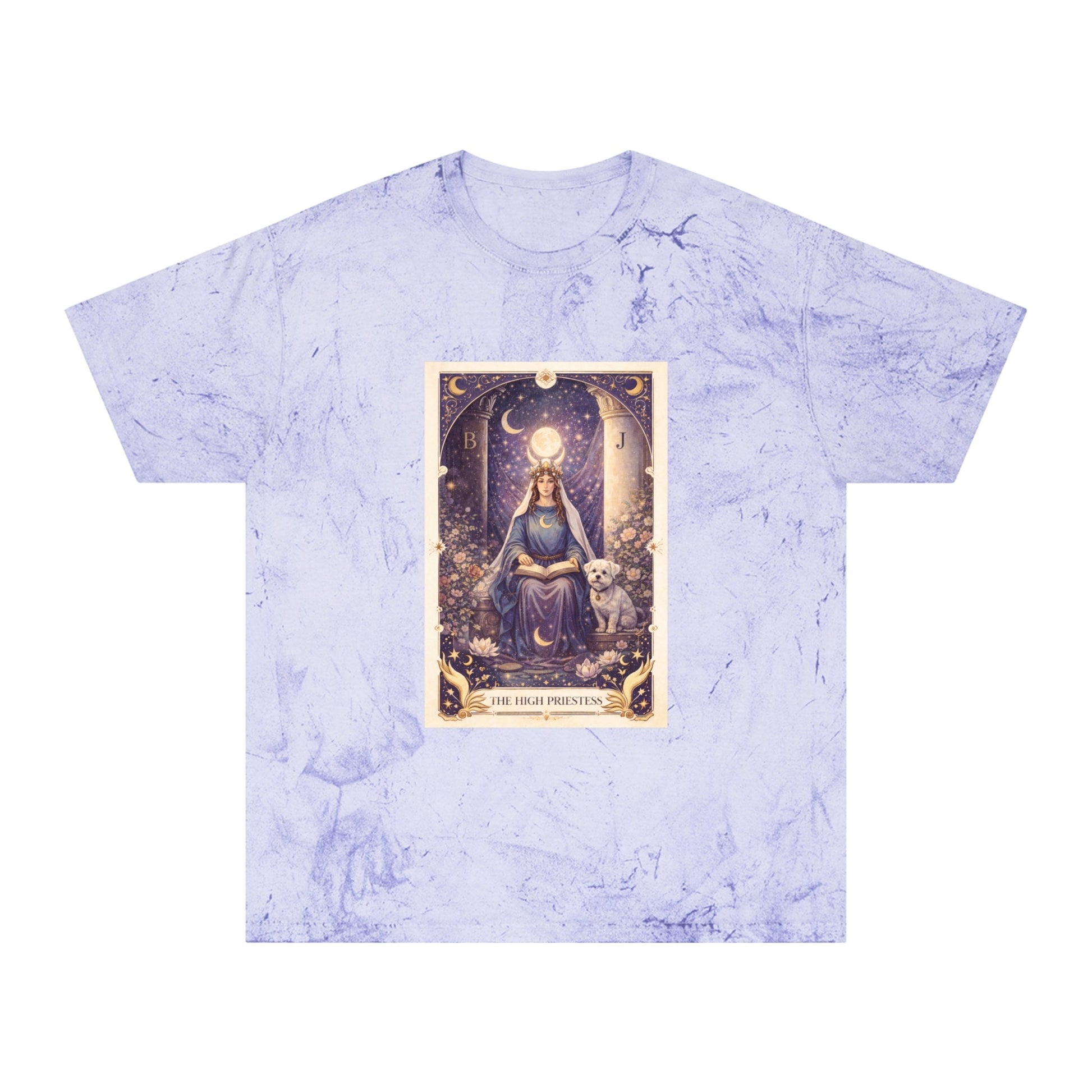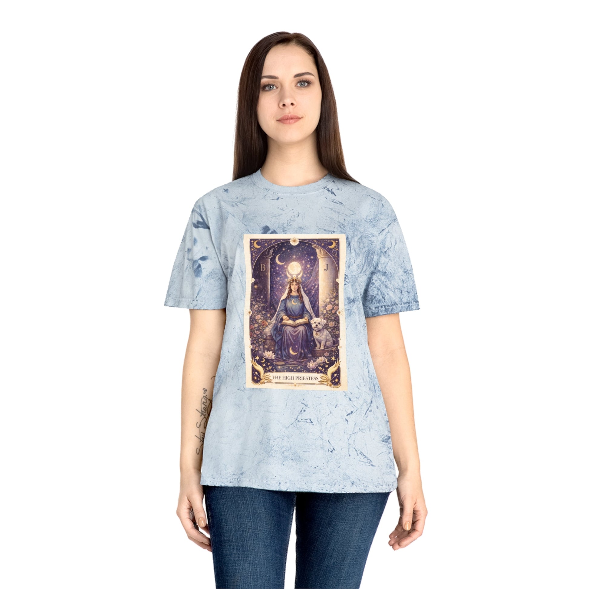 Printed on a Comfort Colors Color Blast tee, this shirt feels timeless and ritual-ready. The garment-dyed, marbled fabric gives each tee a moon-washed, vintage character, making the celestial artwork feel ancient and familiar at the same time. No two shirts are exactly alike, reflecting the personal and intuitive journey of the wearer.