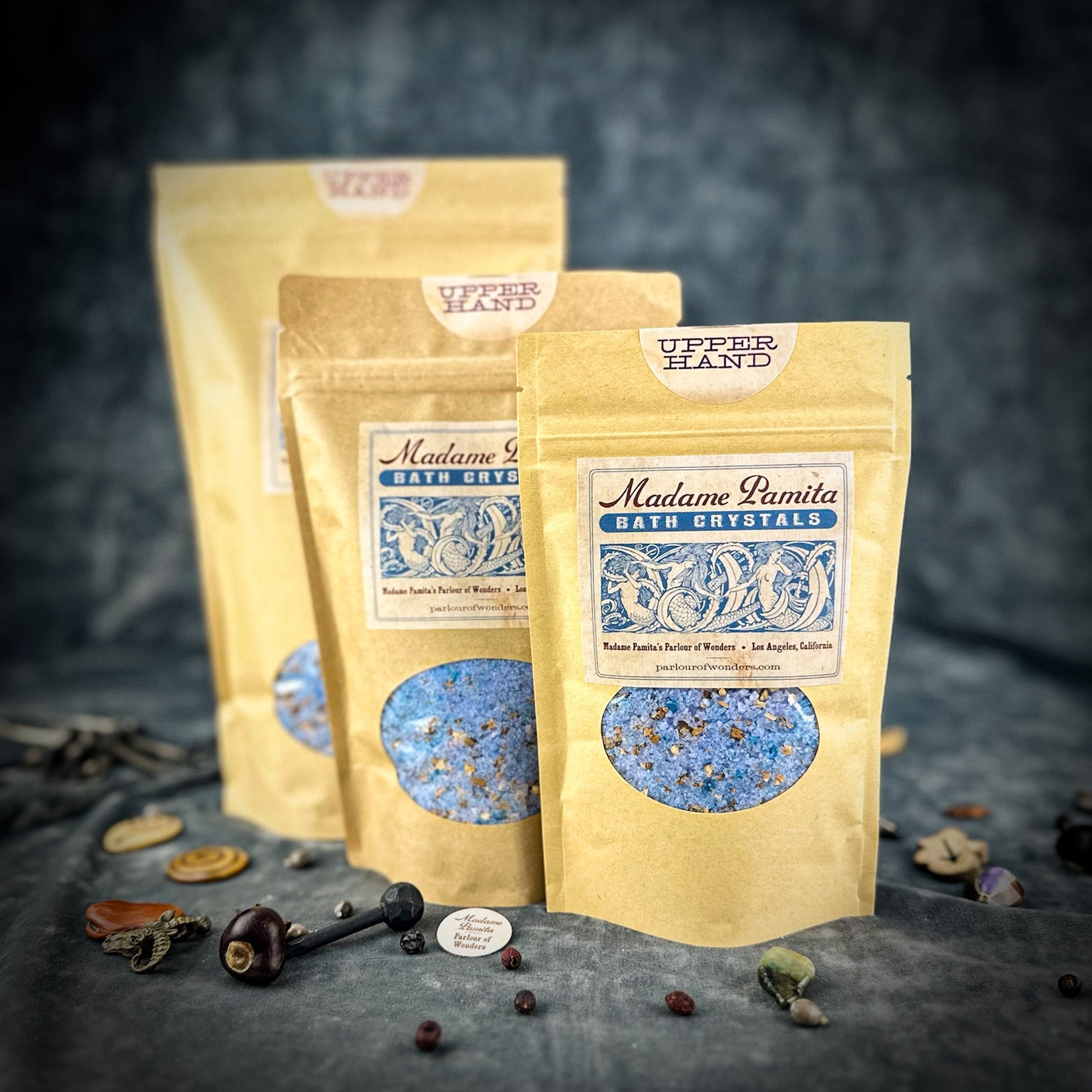 Made with the finest natural ingredients, Upper Hand Bath Crystals are inspired by traditional magical practices to enhance personal power and influence. Each blend contains all-natural sea salt, Epsom salts, organic or wildharvested herbs and botanicals, and organic essential oils, carefully selected to amplify your intentions and support your spiritual goals.